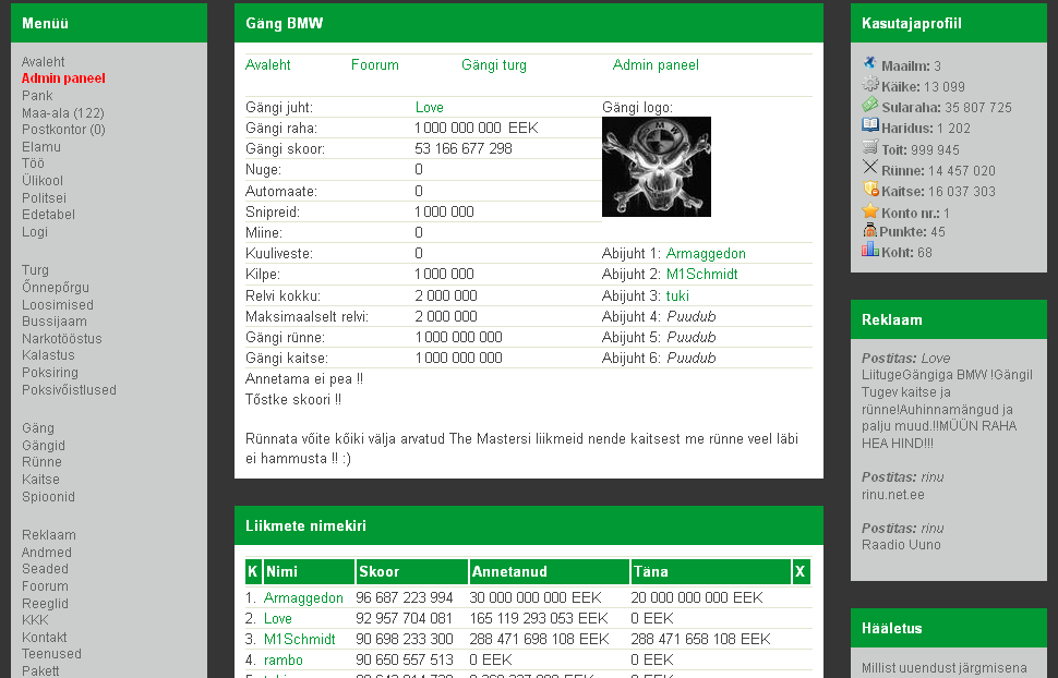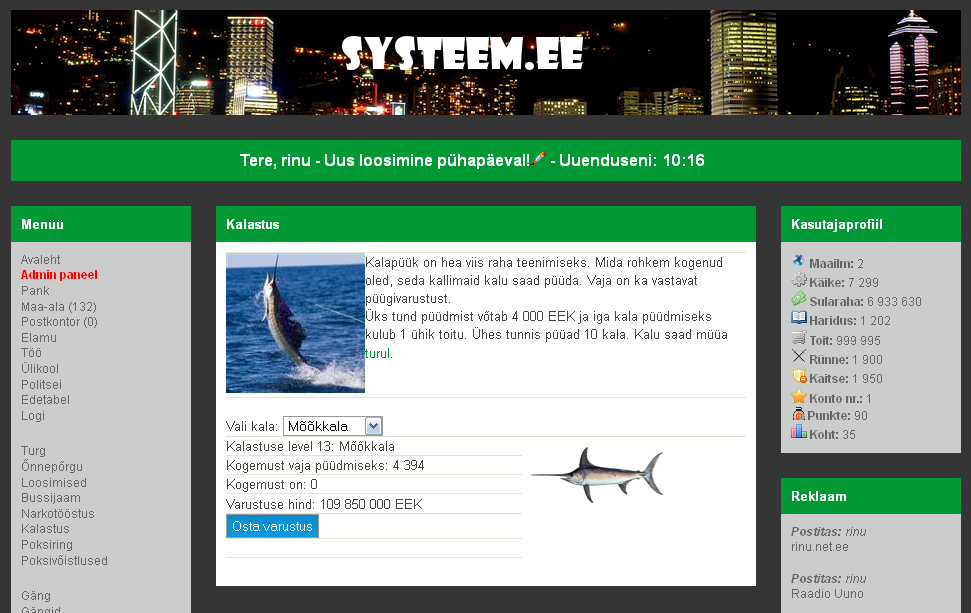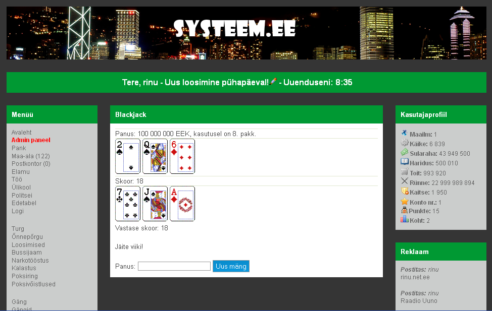 Systeem on brauseril põhinev rollimäng, milles oled sa tegelaskuju, kes püüab saada erinevatel viisidel kõige rikkamaks inimeseks. Mäng on laiade valikuvõimalustega ning arenev.